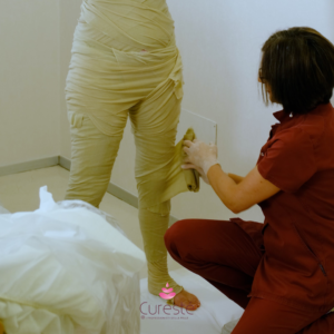 Bendaggio con sali epsom, contro la ritenzione idrica, riattiva la microcircolazione, aiuta ad eliminare le tossine e rivitalizzare la pelle. Migliora l’elasticità dei tessuti e l’idratazione cutanea.